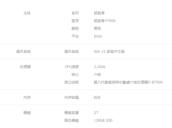 拯救者Y7000-15 i7-8750H/8G/2T+128G/GTX1050Ti-4G獨(dú)顯/15.6寸/黑色7050